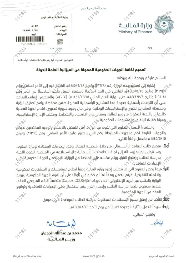 تعميم بشأن تحديث آلية رفع طلبات التعاقدات الرأسمالية